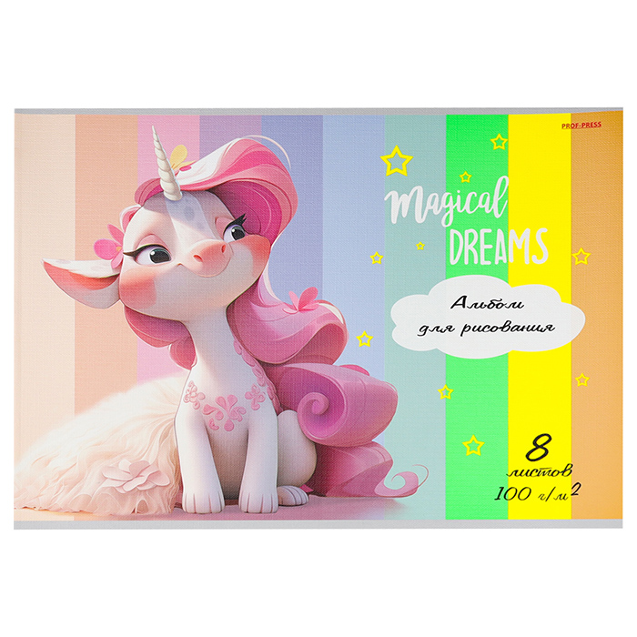 Альбом для рисования 8л. "Единорог с цветами" на скрепке обложка лён