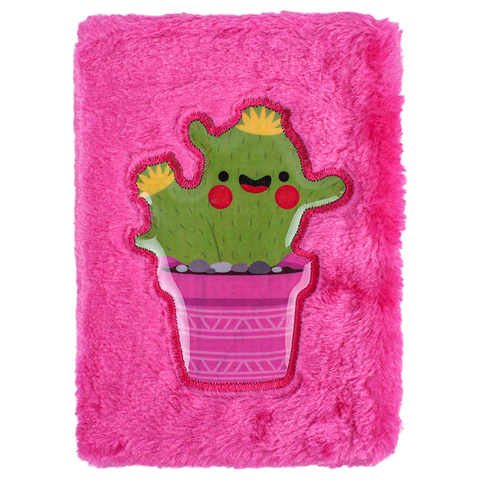 Блокнот в линейку с ляссе (закладка-тесьма).Размер блока 12,3*18,3см Обложка: меховая с рисунком "кактус". Офсет, не менее 80г/м2, 80листов. Упаковка -пакет 14*19,5*2,5см