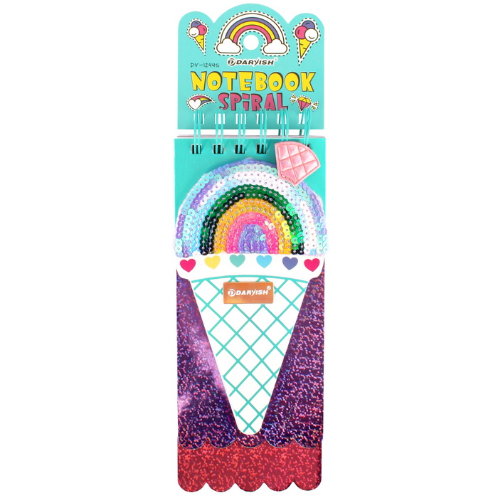 Блокнот 9*22см 180л "Мороженое" на спирали пайетки