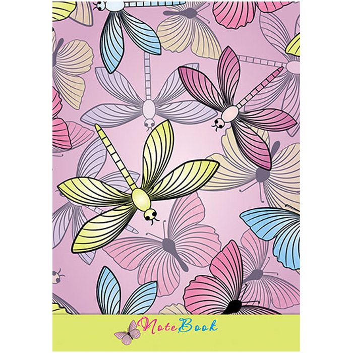 Блокнот А6 48л "Бабочки и стрекозы" в клетку, на гребне