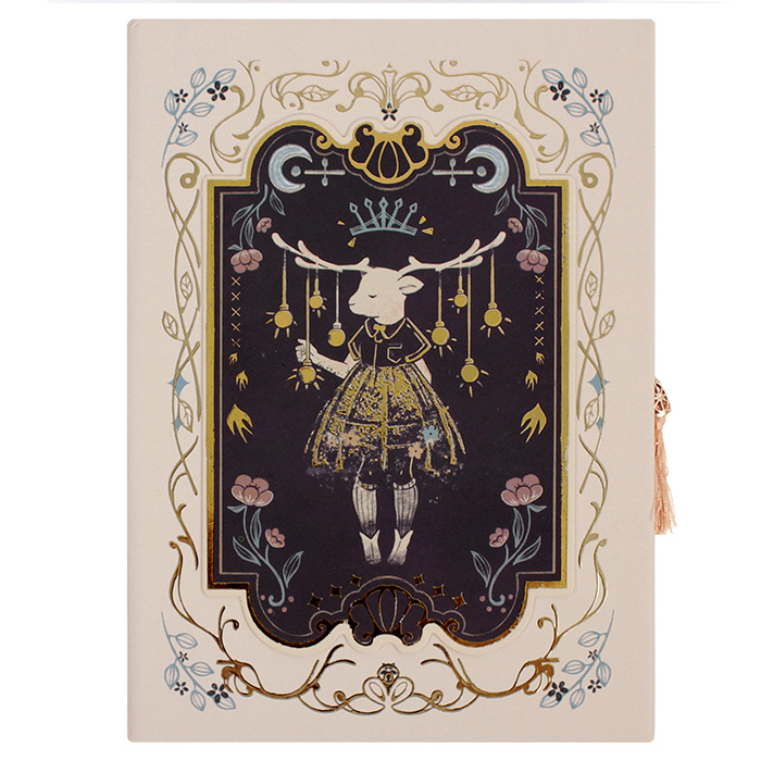 Блокнот для записей в готическом стиле подарит самые прекрасные впечатления. У блокнота 112 листов. Плотность листов не менее 100г/м2. Цветные страницы, наполненные иллюстрациями,  с линовкой и без линовки, также много места для письма и зарисовок любыми видами ручек. Компактный размер 11,6х16,5см, формат чуть больше А6, удобен для любой сумочки и школьного рюкзака. Обложка - картон с тиснением "золото", тип бумаги-офсет, закладка (ляссе). На обложке - Девочка-олень. Можно использовать как ежедневник, читательский дневник, личный дневник, блокнот желаний, творческую тетрадь, альбом для наклеек, дневник благодарностей и просто для записей своих идей и мечтаний.