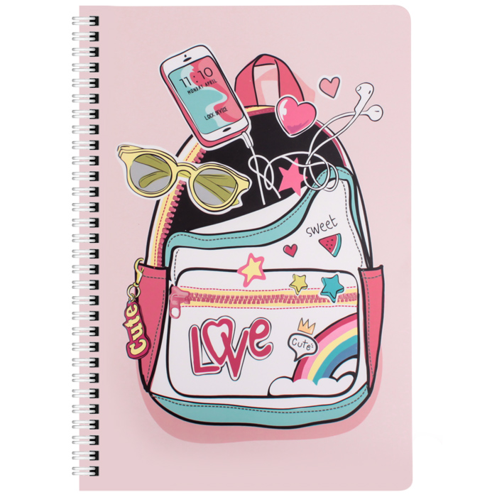 Блокнот на металлической спирали. Представлен в 4 дизайнах. Размер: 15*20,5см. Количество листов: 60. Графление: линейка.