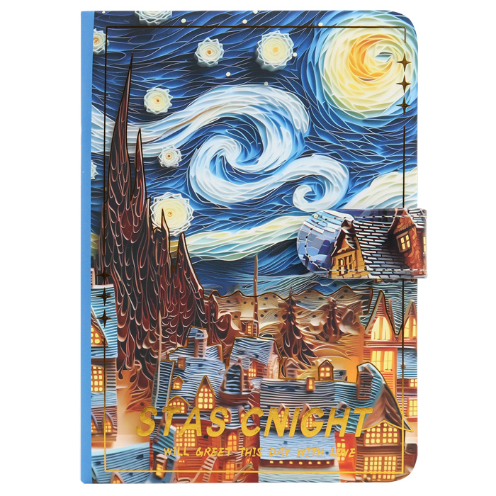 Блокнот 12,5*17,5 см 96л на магнитной застёжке "Звёздная ночь". Графление: линейка. Упаковка: пакет.