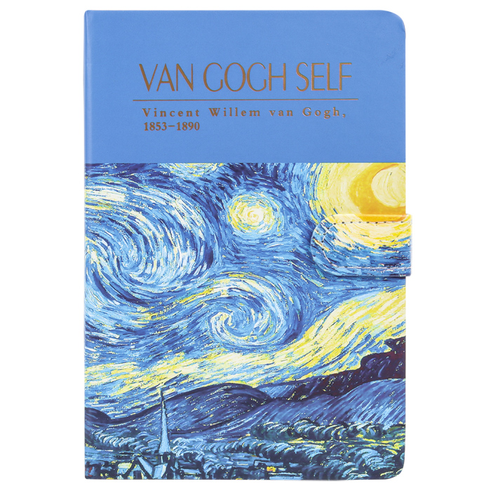 Блокнот на магнитной застежке с цветным срезом 13*19см. Закладка-ляссе. Офсет, 112л в линейку. Плотность не менее 100г/м2. Изображение с картины Винсент ван Гога " Звездная ночь" 1889г.Упаковка: плёнка.