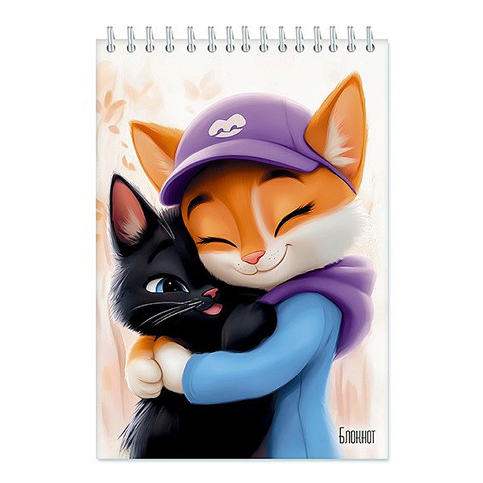 Блокнот на гребне, 48 листов, формат А5, клетка, плотность 60 гр/м2. Внутренний блок - высококачественная белая офсетная бумага. Обложка - мелованный картон, полноцветная печать с защитным ВД-лаком. Крепление - металлическая евроспираль сверху.