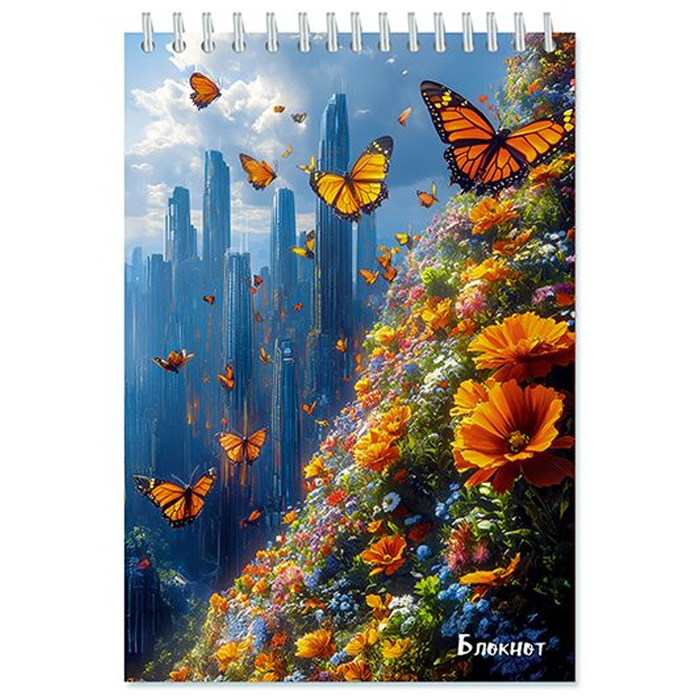 Блокнот на гребне, 48 листов, формат А5, клетка, плотность 60 гр/м2. Внутренний блок - высококачественная белая офсетная бумага. Обложка - мелованный картон, полноцветная печать с защитным ВД-лаком. Крепление - металлическая евроспираль сверху.