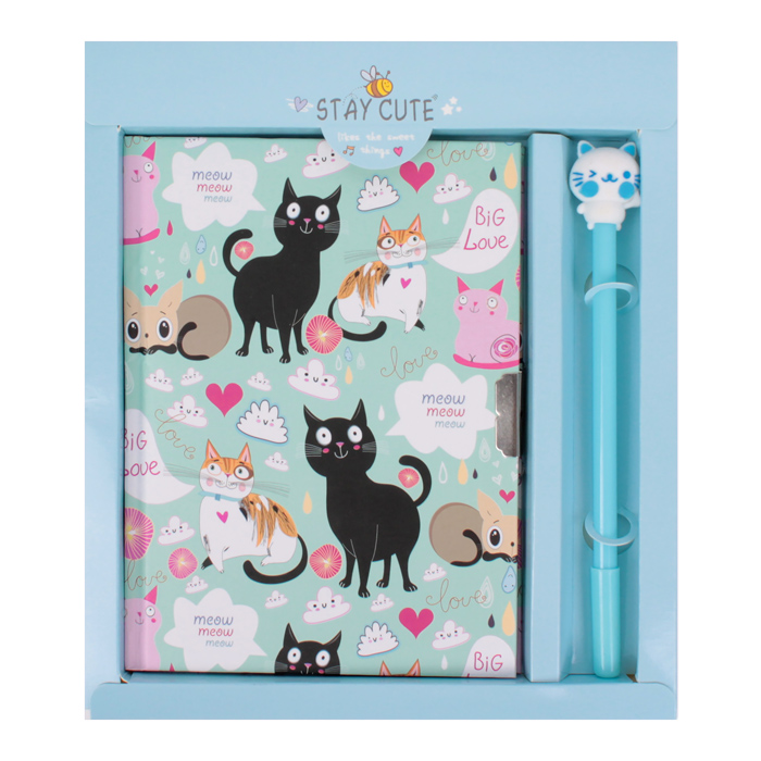 Блокнот A5 50л "Милые котики" с ручкой в наборе цвет голубой