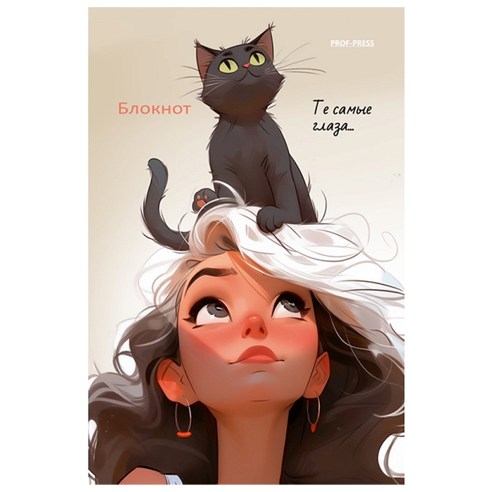 Блокнот А6 24л "Девушки и коты-2" ассорти, на скрепке