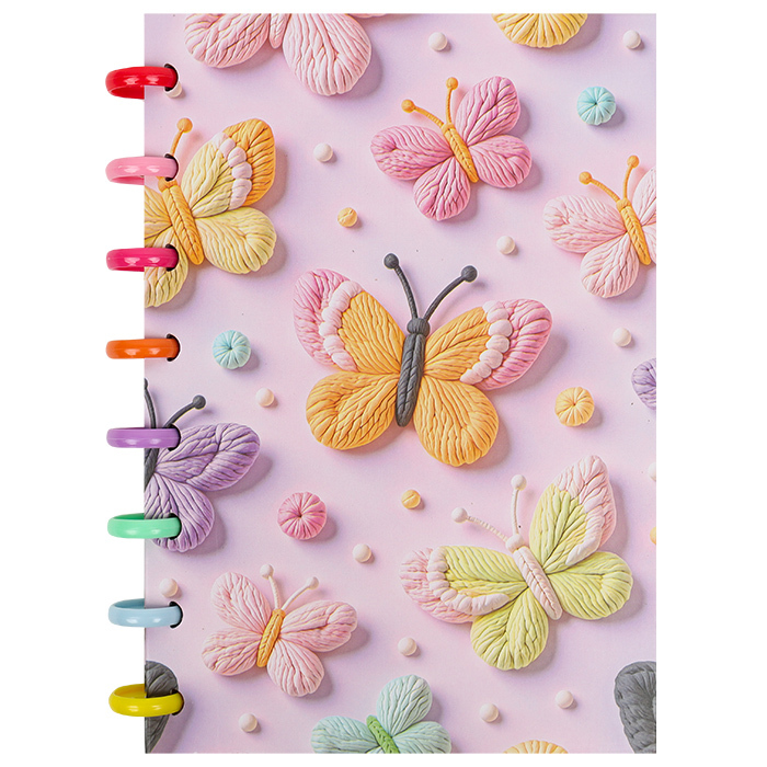 Блокнот 15,5*21см 80л на пластиковых кольцах в клетку "Бабочки"