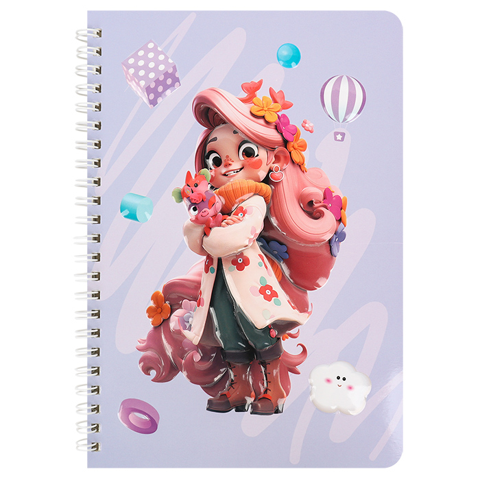 Блокнот 15,5*20,5см 60л на спирали в клетку "Девочка"