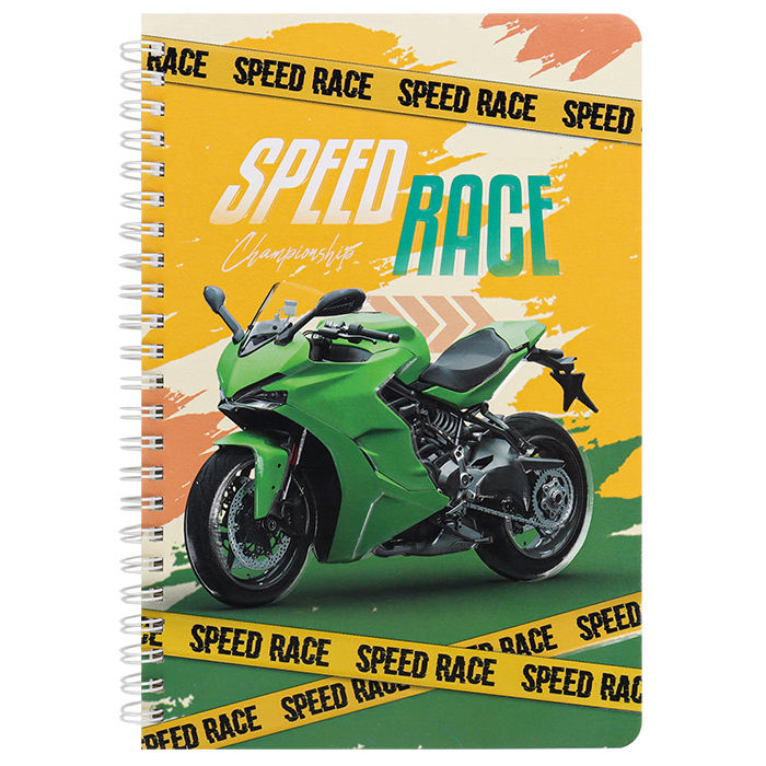 Блокнот 15,5*20,5см 60л на спирали в клетку "Зелёный мотоцикл"