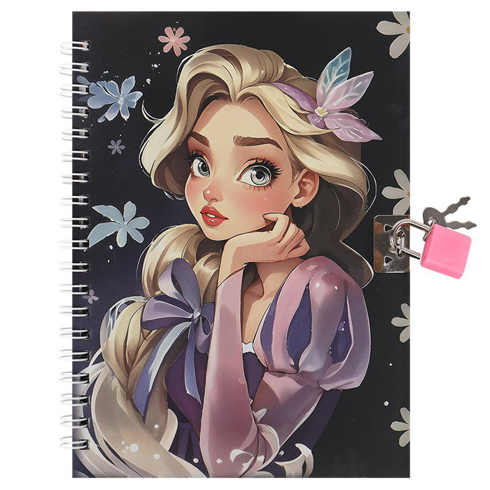 На спирали, на замке с ключиками. Размер 13*18см. Кол-во листов: 48. Графление клетка. Упаковка-пакет.
