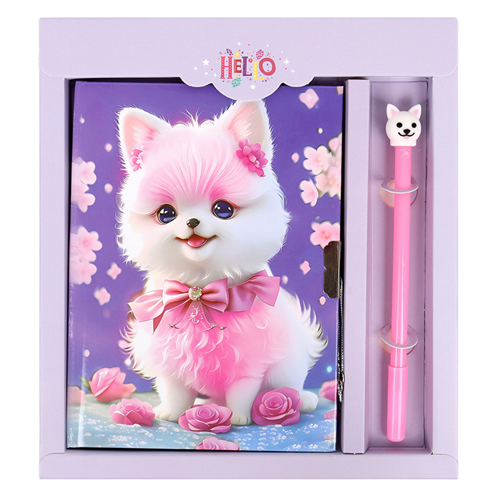Блокнот 13,5*18 см 50л с замком "Собачка с бантом" с ручкой