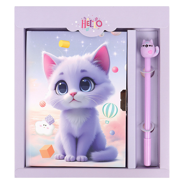 Блокнот 13,5*18 см 50л с замком "Милый котенок" с ручкой
