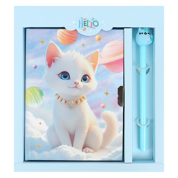 Блокнот 13,5*18 см 50л с замком "Кошечка" с ручкой