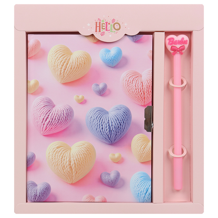 Блокнот 13,5*18 см 50л с замком "Сердца" с ручкой