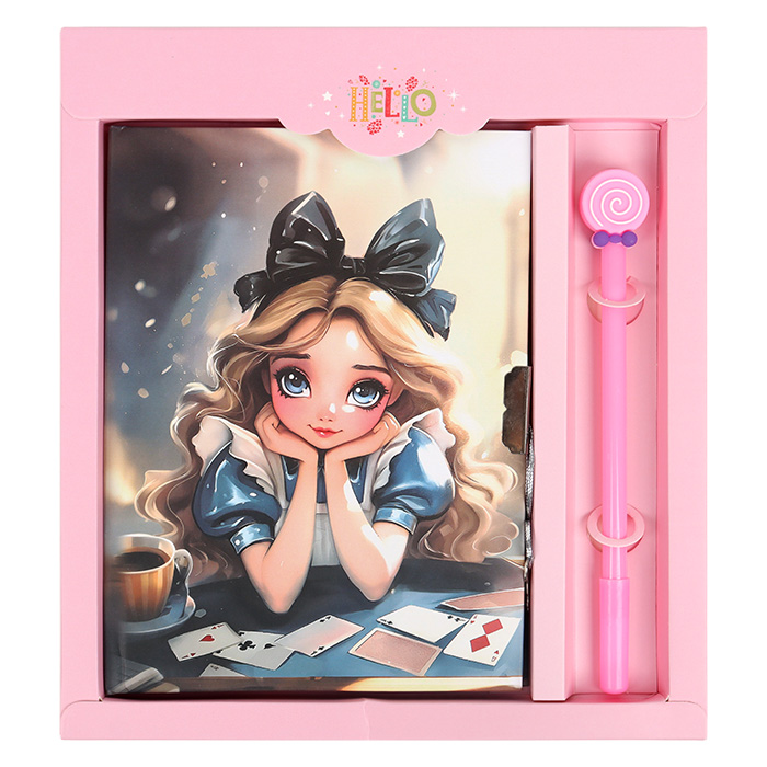 Блокнот 13,5*18 см 50л с замком "Алиса в стране чудес" с ручкой