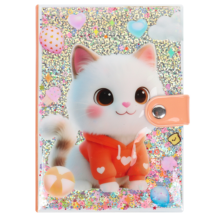 Блокнот 10,5*14,8 см 80л с обложкой ПВХ "Котик" на кнопке