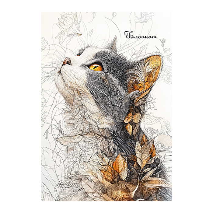 Блокнот на гребне, 40 листов, формат А5, плотность 60 гр/м2. Внутренний блок из офсетной бумаги №2. Блок в клетку. Обложка - мелованный картон, полноцветная печать. Крепление - металлическая евроспираль сверху.
