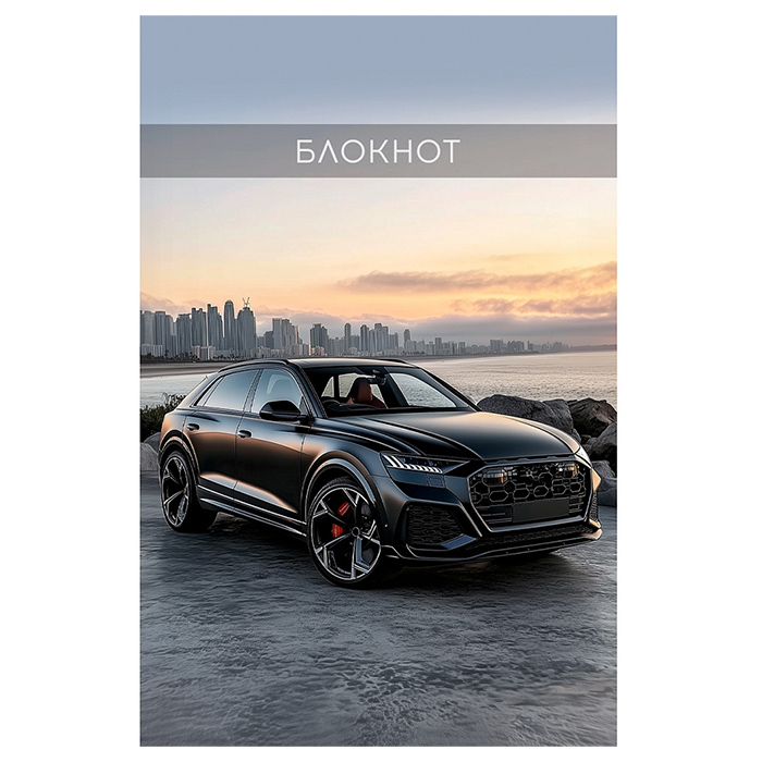 Блокнот А7 48л "Чёрный автомобиль-16" на склейке