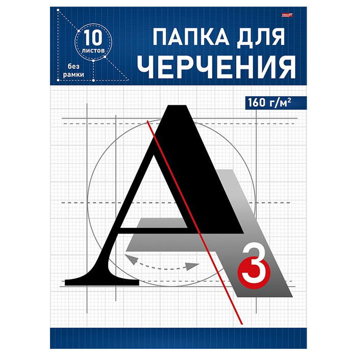 Папка для черчения содержит 10 отдельных листов бумаги для выполнения чертежно-графических работ карандашами, тушью и чернилами. Внутренний блок без рамки, плотность: 160г/м2, формат А3.