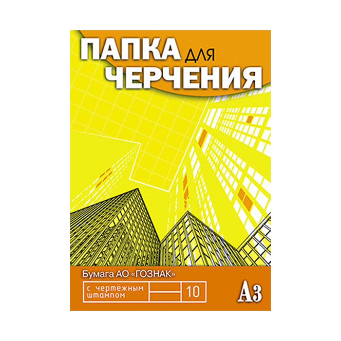 Папка для черчения с вертикальным ученическим штампом, 10 листов, формат А3, плотность 160 гр/м2. Внутренний блок - высококачественная офсетная бумага с напечатанным вертикальным ученическим штампом. Упаковка - папка из мелованного картона, полноцветная печать с защитным ВД-лаком.