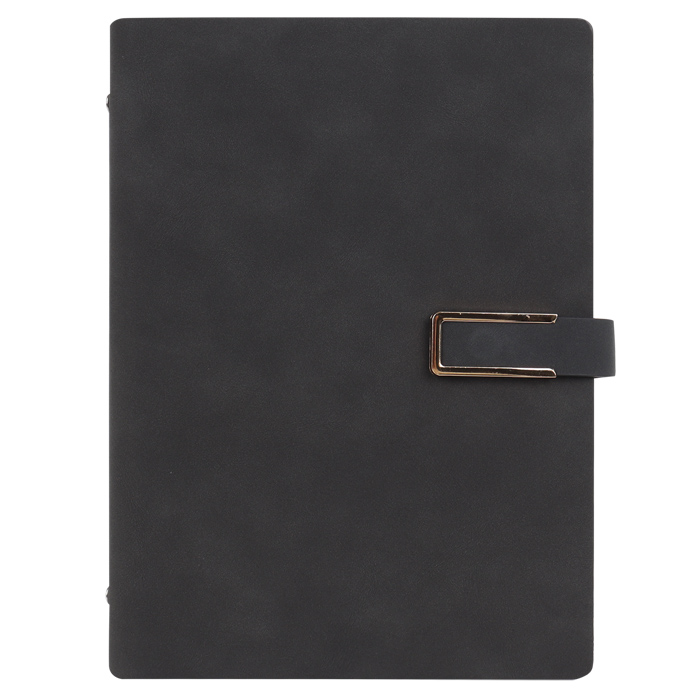 Ежедневник недатированный , размер:16,5*23см , обложка -кожзам , на кольцах и магнитной застёжке,  количество листов -100, графление-линейка, размер внутреннего блока -14*21см. Цвет: тёмно-серый..Упаковка: мешок текстиль