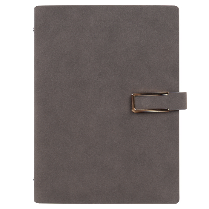 Ежедневник недатированный , размер:16,5*23см , обложка -кожзам , на кольцах и магнитной застёжке,  количество листов -100, графление-линейка, размер внутреннего блока -14*21см.Цвет: серо-коричневый.Упаковка: мешок текстиль
