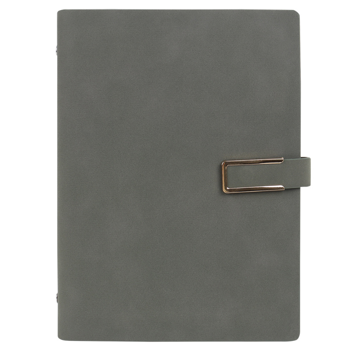 Ежедневник недатированный , размер:16,5*23см , обложка -кожзам , на кольцах и магнитной застёжке,  количество листов -100, графление-линейка, размер внутреннего блока -14*21см.Цвет: серо-зелёный.Упаковка: мешок текстиль