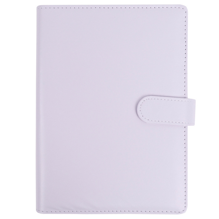 Ежедневник недатированный , размер:18*23см , обложка -кожзам , на кольцах и магнитной застёжке, внутри с дополнительными карманами количество листов -100, графление-линейка, размер внутреннего блока -14*21см. Цвет: сиреневый. Упаковка: мешок текстиль 20*25*3,5см