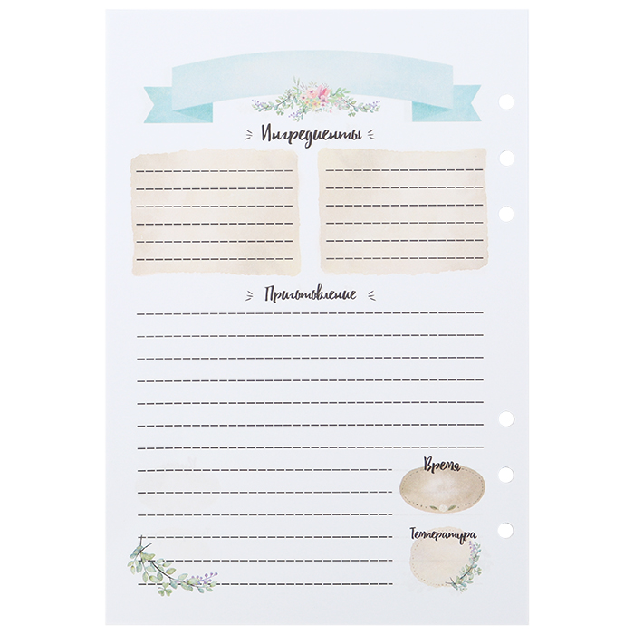 Сменный блок из белой бумаги с 6 отверстиями для записи рецептов.