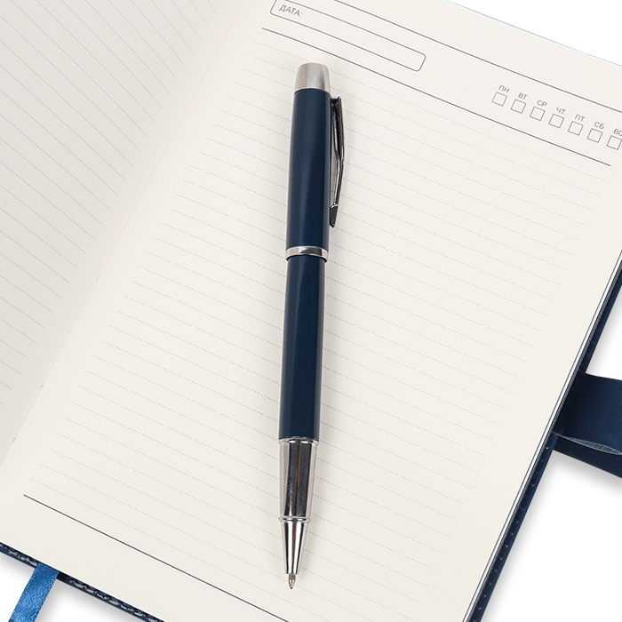 Набор подарочный(ежедневник недатир. с магнитной застежкой + ручка+стержень) цвет синий