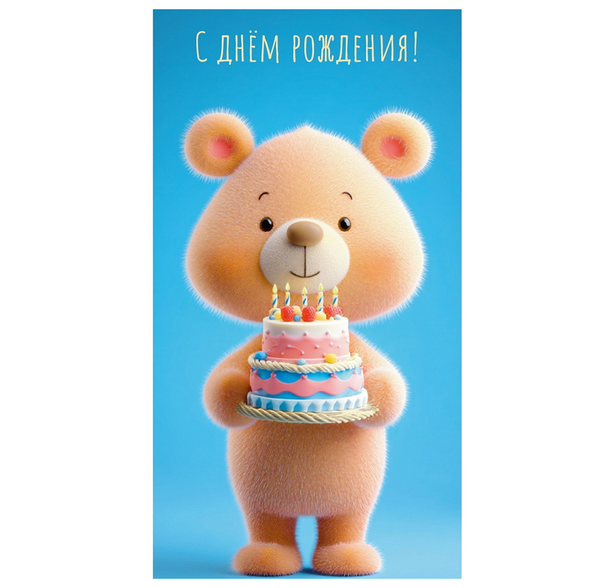 Открытка-конверт Dream Cards "С Днем Рождения!" мишка с тортиком