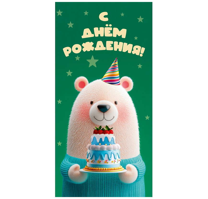 Открытка-конверт "С днем рождения! Мишка с тортом"