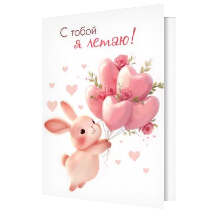 Двойная мини-открытка "С тобой я летаю!" (валентинка)