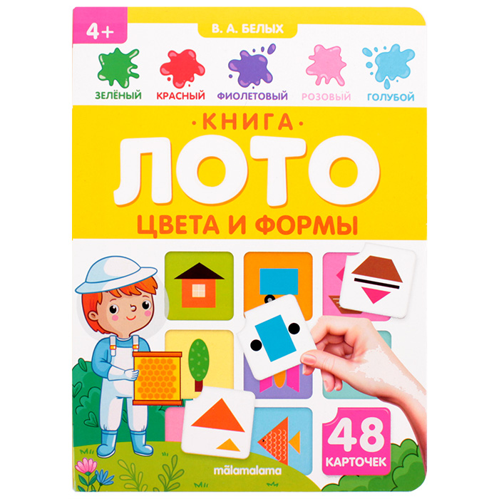 С книгой-лото "Цвета и формы" ребенок в занимательной форме освоит основные цвета и формы. На 8-ми страницах малыш найдет 48 карточек, которые помогут выполнить множество увлекательных и развивающих заданий.Книга предназначена для: развития логического мышления, внимания, интеллекта, изучения цветов и раннего развития ребенка. Книга-лото это обучающее пособие для малышей от 2 (двух) лет
