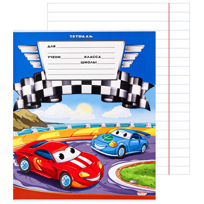Тетрадь 12л линейка цв. обл "Машинки и клетчатый флаг"