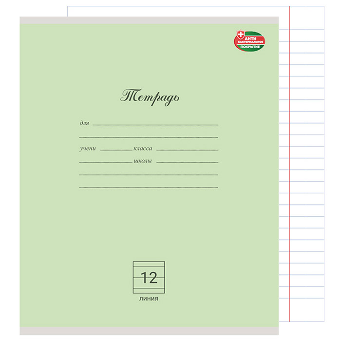 Тетрадь 12л линейка цв. обл "Однотон" антибак.покрытие