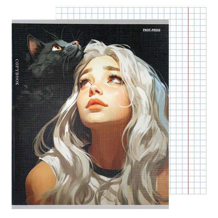 Тетрадь 48л кл. "Девушки и котики" обложка лён