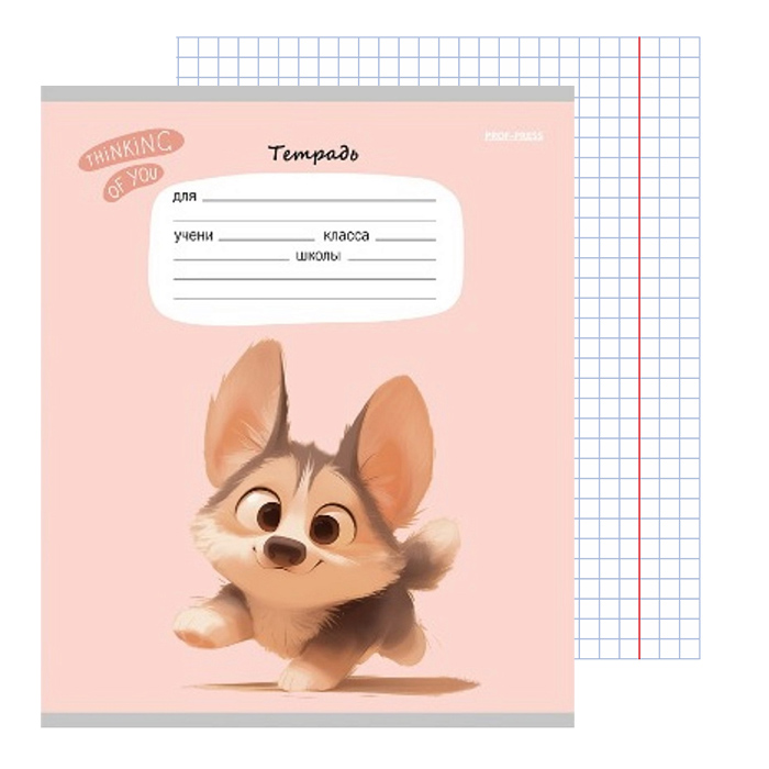 Тетрадь 12л клетка цв. обл "Маленький корги"