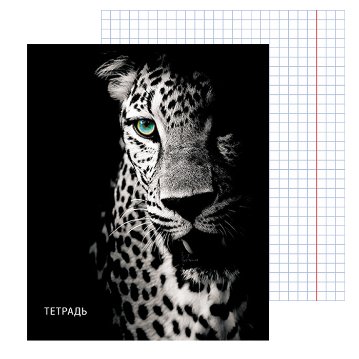 Тетрадь 48л кл "Леопард на чёрном" обложка мел. кар.