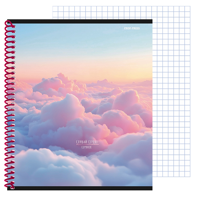 Тетрадь 48л кл. цветная спираль "Полёт над облаками" обложка софт-тач
