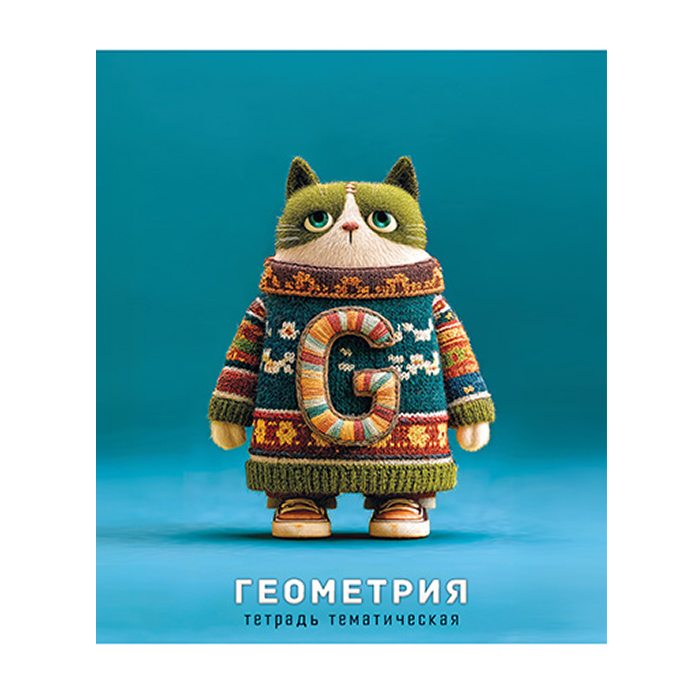 Тетрадь предметная 48л кл Геометрия "Котики в свитерах" обложка ВД-лак