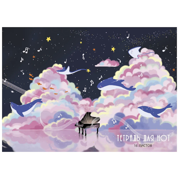 Тетрадь для нот А4 формата – отличный инструмент для записи нот различной сложности. Тетрадь отличает качество исполнения: удобный формат А4, плотная обложка из мелованного картона (230гр/м), белый внутренний блок (60гр/м), горизонтальная ориентация (альбомная) с четкой линовкой и узким станом, современный дизайн от профессионального иллюстратора Екатерины Ефремовой. Тетрадь рекомендована к использованию как начинающими, так и опытными музыкантами для уроков в музыкальной школе и самостоятельных занятий дома. Количество листов: 16 листов. Крепление: скрепка, по короткой стороне.