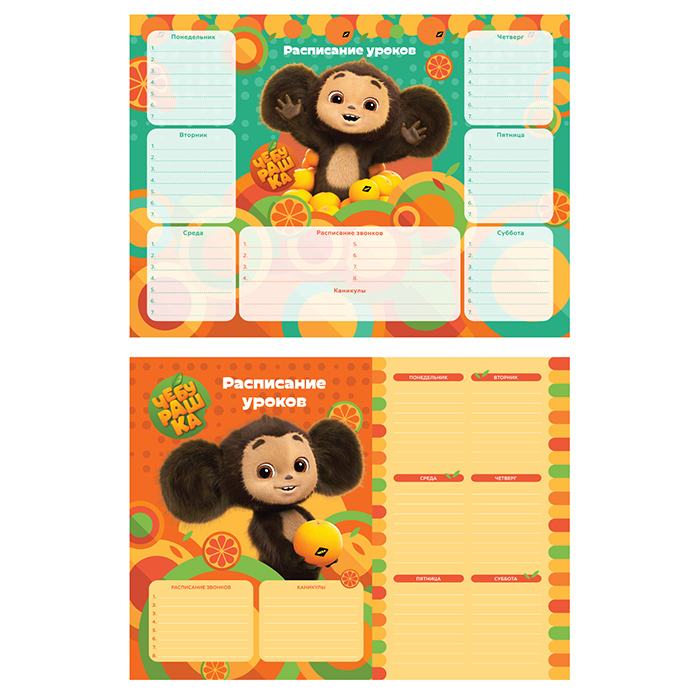Расписание уроков с расписанием звонков А4 Мульти-Пульти "Чебурашка"