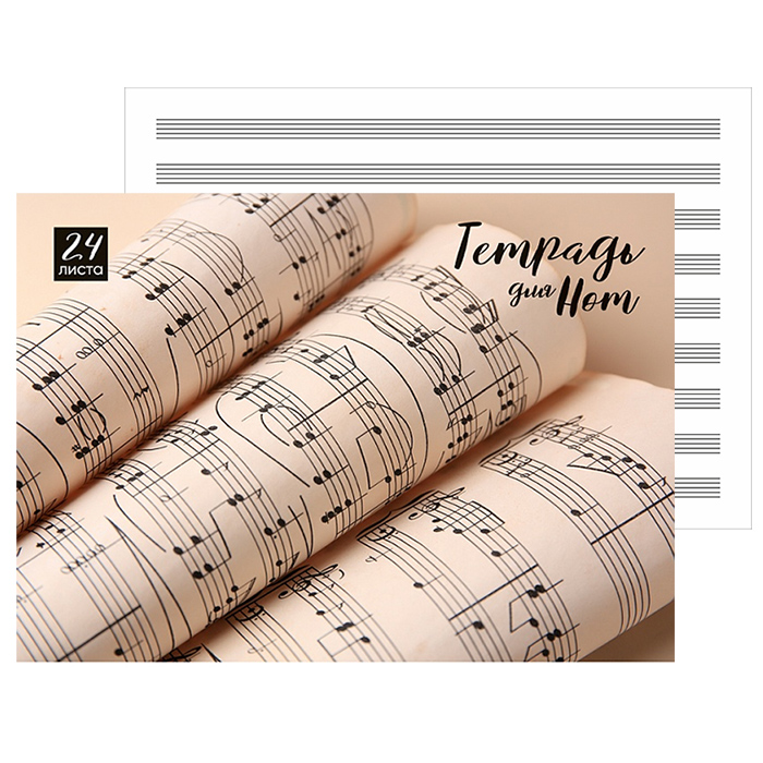 Тетрадь для нот А4 24л. альбомная "Ноты в свитках" на скрепке