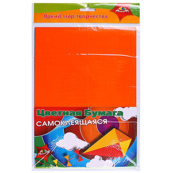 Бумага цветная самоклеящаяся А4 5л. 5цв. "Воздушный змей" упаковка ПЭТ- пакет