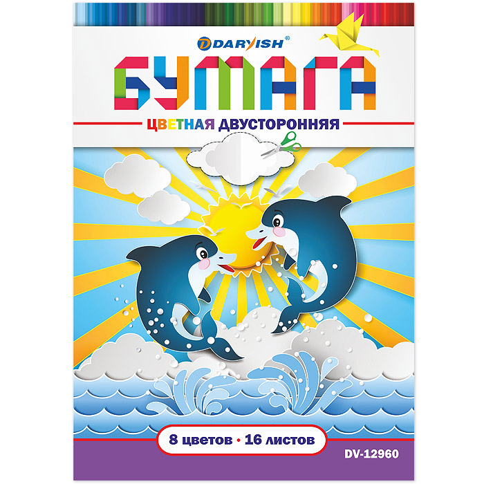 Бумага цветная двухсторонняя А4 16л. 8цв. "Darvish"