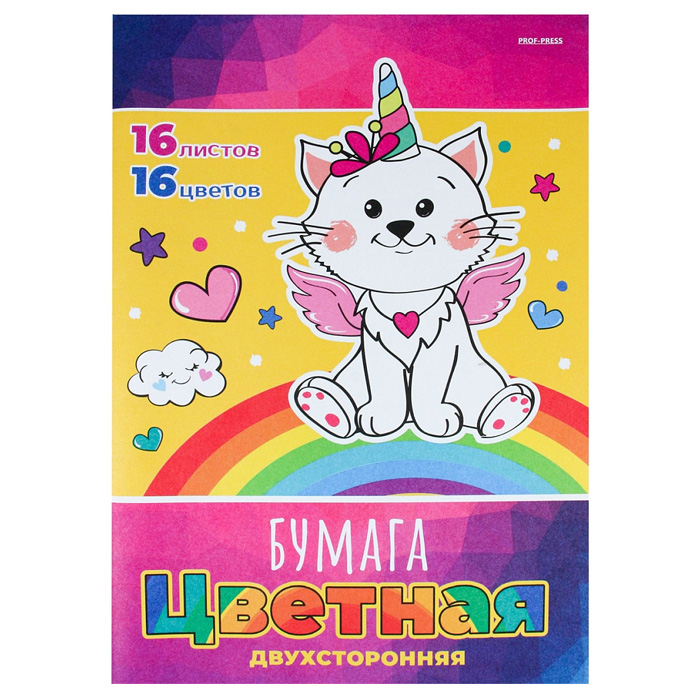 Бумага цветная двухсторонняя А4 16л.16цв. "Странный котик-3"