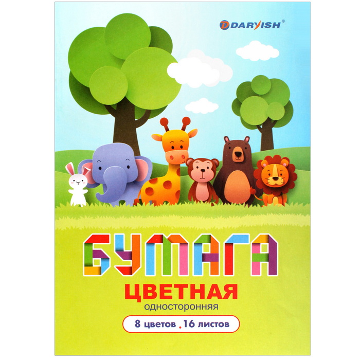 Бумага цветная А4 16л. 8цв. "Зверята" РБ